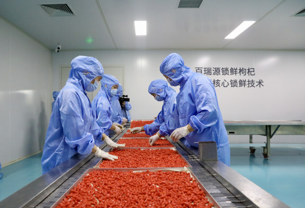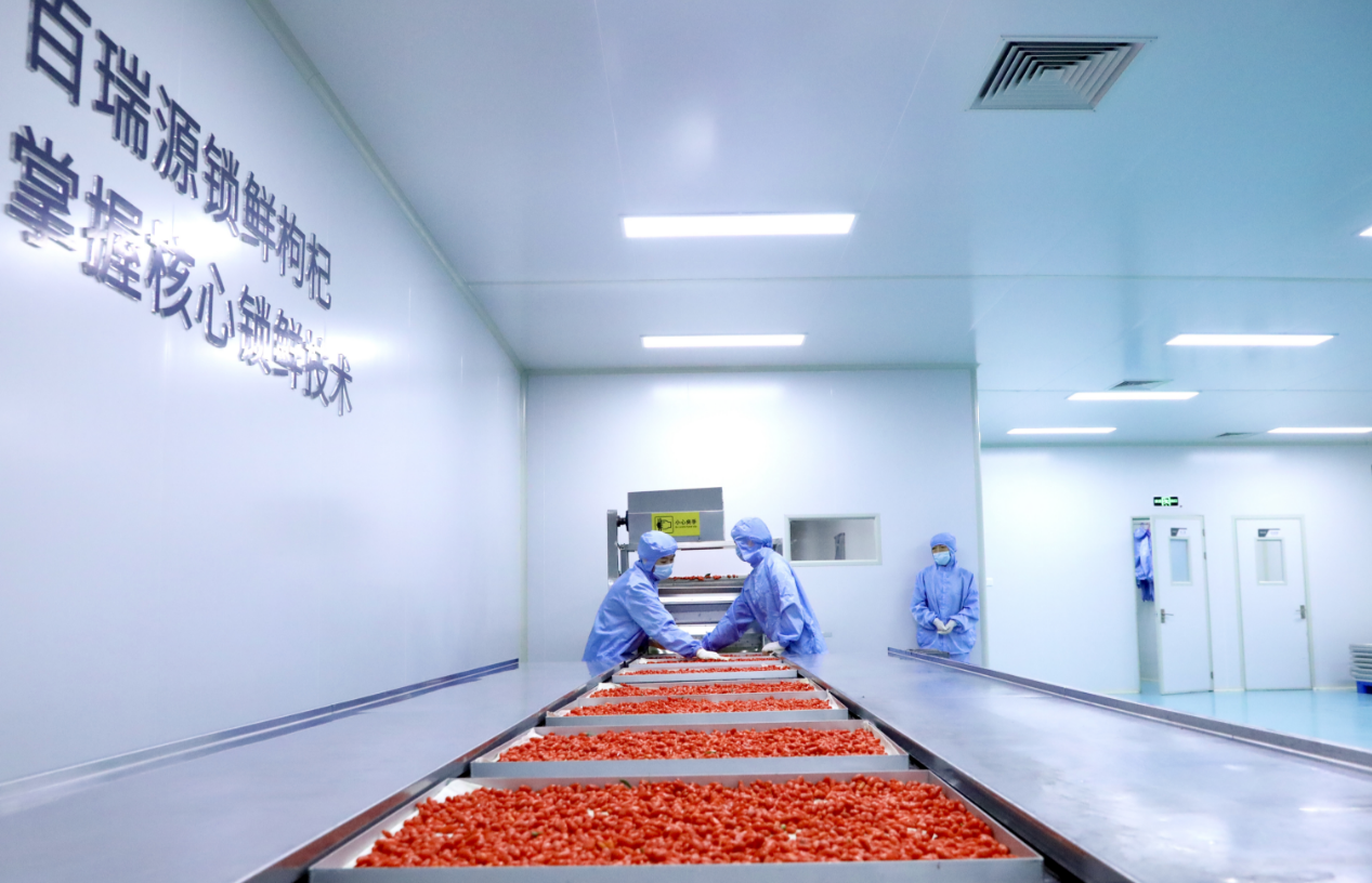 为解决行业难题和消费者痛点,2013年,百瑞源联合中国农业大学,开启“锁鲜枸杞”工艺技术创新之路,历时6年时间的研究、实验和中试生产,2020年6月26日,中国枸杞行业首家智能化锁鲜枸杞生产线在宁夏中宁正式投产,2021年,被自治区工信厅授予“数字化生产车间”。