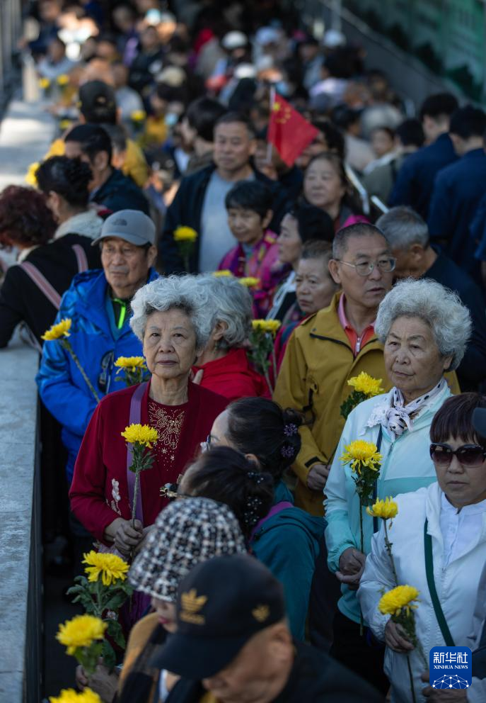 9月18日,在侵华日军第七三一部队罪证陈列馆前,人们排起长队准备进馆参观。