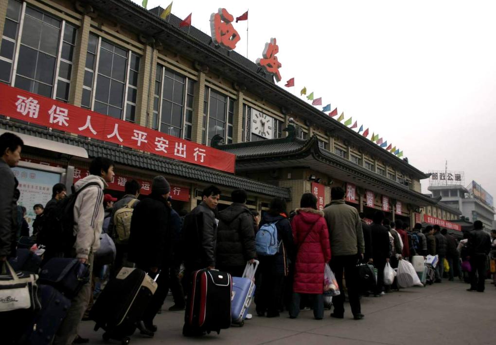 2006年1月15日,旅客在西安火车站排队等候进站。新华社记者 陈钢 摄