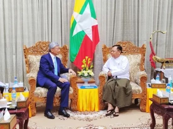 陈海大使就打击电信诈骗等犯罪活动再次约谈缅甸副总理兼内政部长梭突 图片来源:中国驻缅甸大使馆