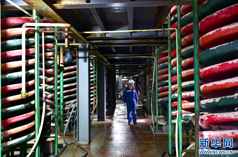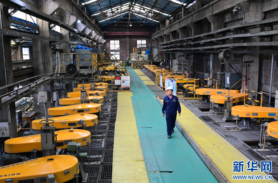 大坪选矿车间内,张祥健正在巡检(6月10日摄)。新华网发(刘起 摄)