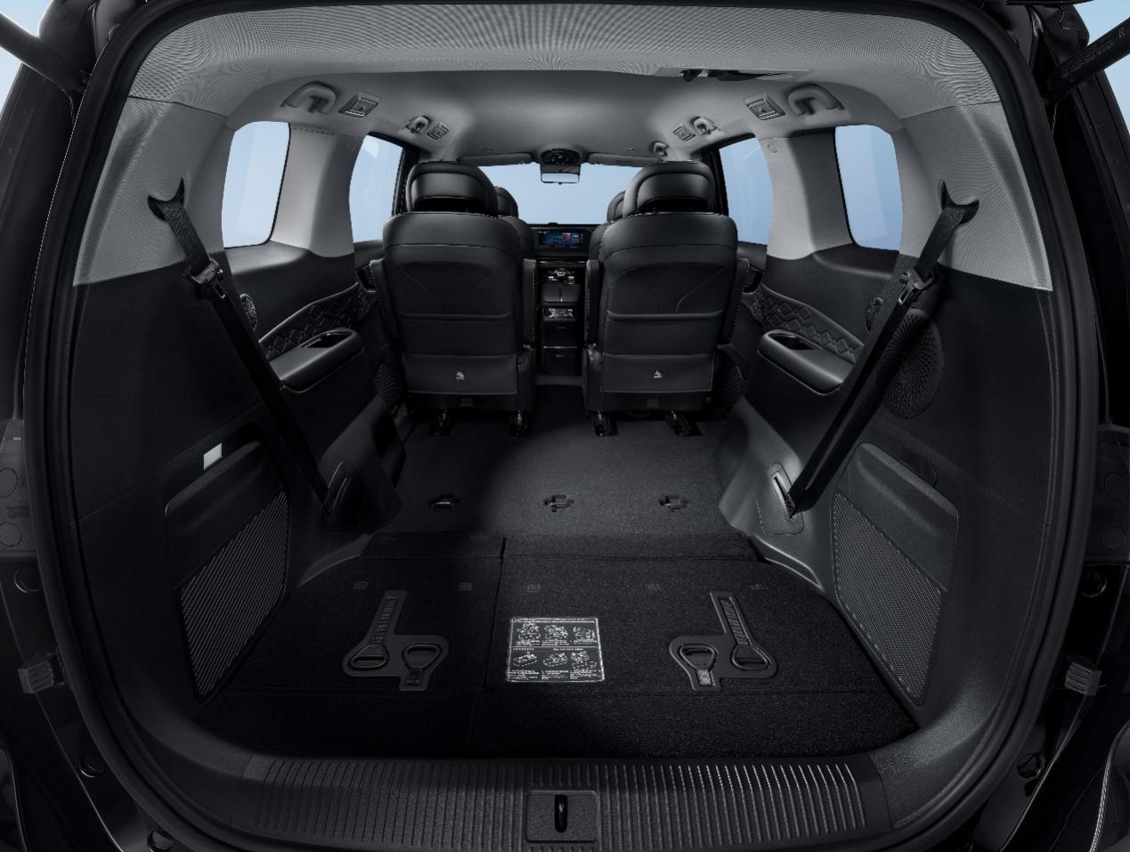 魔术大空间。大家庭出游,每个人都需携带自身行李,星海V9越享系列长宽高5230*1920*1820mm,轴距3018mm,车内空间有效利用率高达85.2%,不仅车内实用面积达到5.54m²,而且灵活多变,完全满足全家人的置物需求。第三排4/6下沉放平设计,坐满7人,后备箱仍有同级第一的593L,7人份行李箱和背包轻松容纳,如果双人出行,将第三排折叠,后备箱依然同级最大,足足2616L,秒变1.7m大床房,既可小憩,也装得下帐篷、睡袋等露营装备。