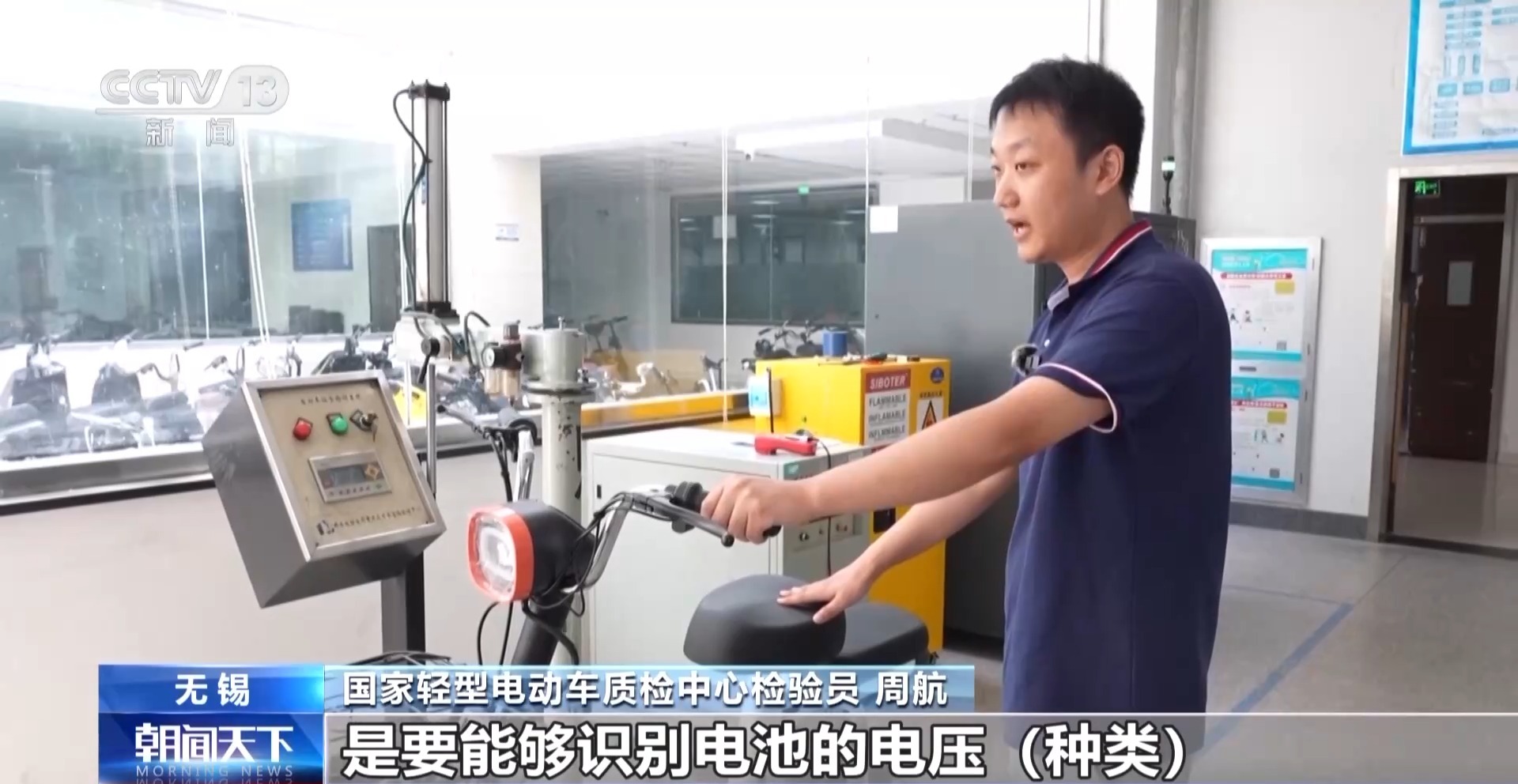 国家轻型电动车质检中心检验员周航:新国标要求对于控制器来说,能够识别电池的电压(种类),这台车的标称电压是48V,防篡改中规定就是此辆车只能对标称48V的铅酸(电池)能够运行,使用户无法对电池电压进行篡改,增强了整车的安全性。
