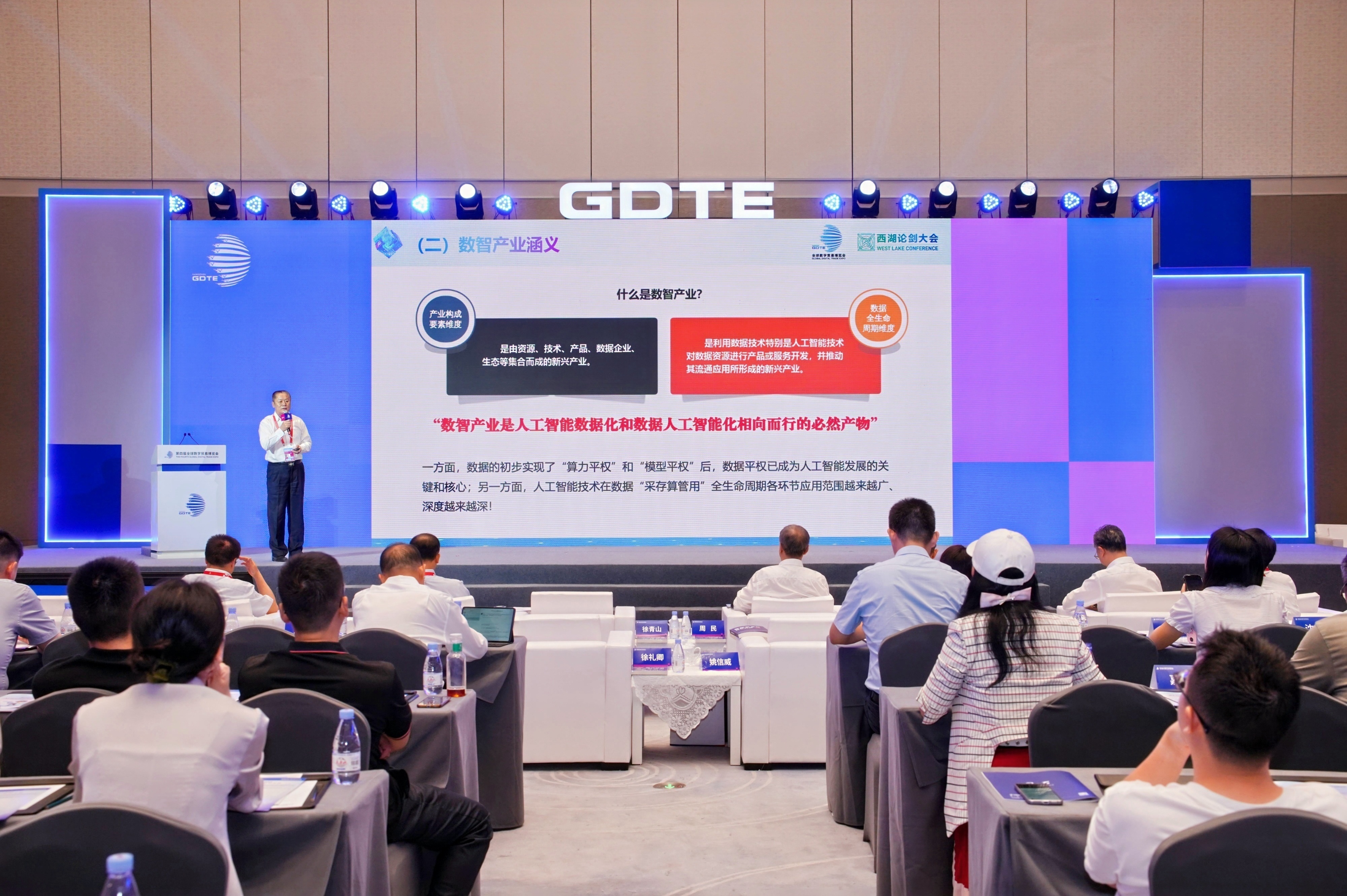 “数智产业是面向人工智能应用的数据产业与以高质量数据集为核心的人工智能产业,两者相向而行、相互作用、相互融合,形成的一种以数据为关键要素、以人工智能为核心技术的产业新业态。”张向宏首先明确了数智产业的定义。