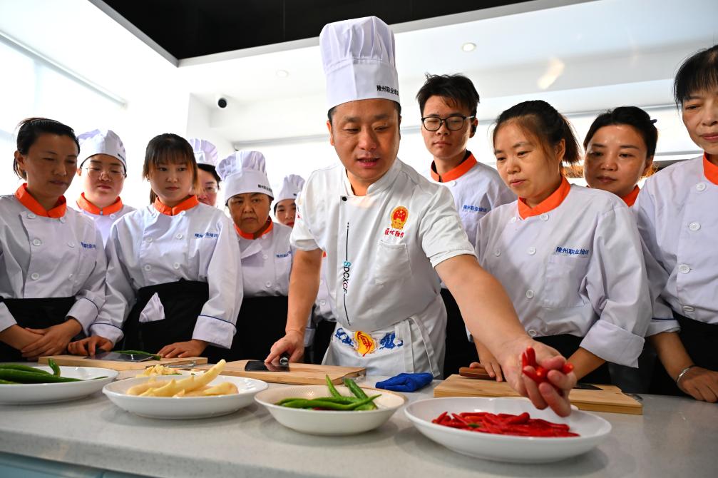 “现在县城餐饮消费很旺,我们学习了厨师专业技能,以后找工作更有底气了。”参加“中式烹调师”培训班的学员王贵忠说。
