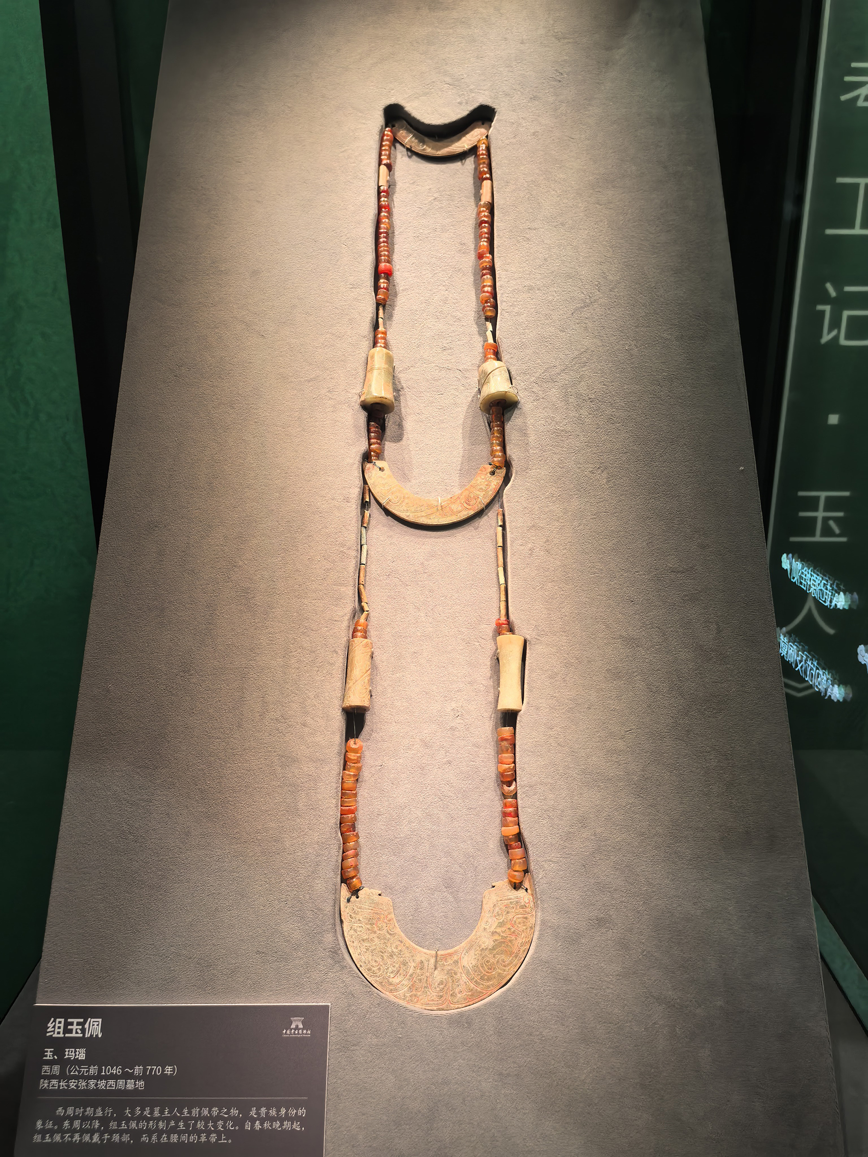 商周时期,玉器使用形成严格的礼制规范。殷墟时期高规格墓葬中的玉石礼器组合,与铜礼器、铜兵器组合具有一定的对应关系。张家坡西周墓地墓主是周时期世袭贵族。该墓地出土的玉礼器与仪仗玉器数量减少,表明此时祭祀与军事象征功能有所弱化,而玉佩、串饰等装饰用玉流行,成为标识贵族身份的符号。