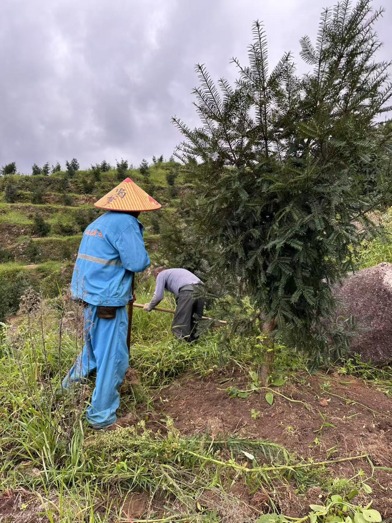 近日,在海拔800多米的浙江省温州市文成县铜铃山上,300余亩香榧林长势喜人,一颗颗翠绿色的香榧果挂满枝头,果农们正忙着在香榧树下锄草、施肥,以确保果实能够丰产丰收。