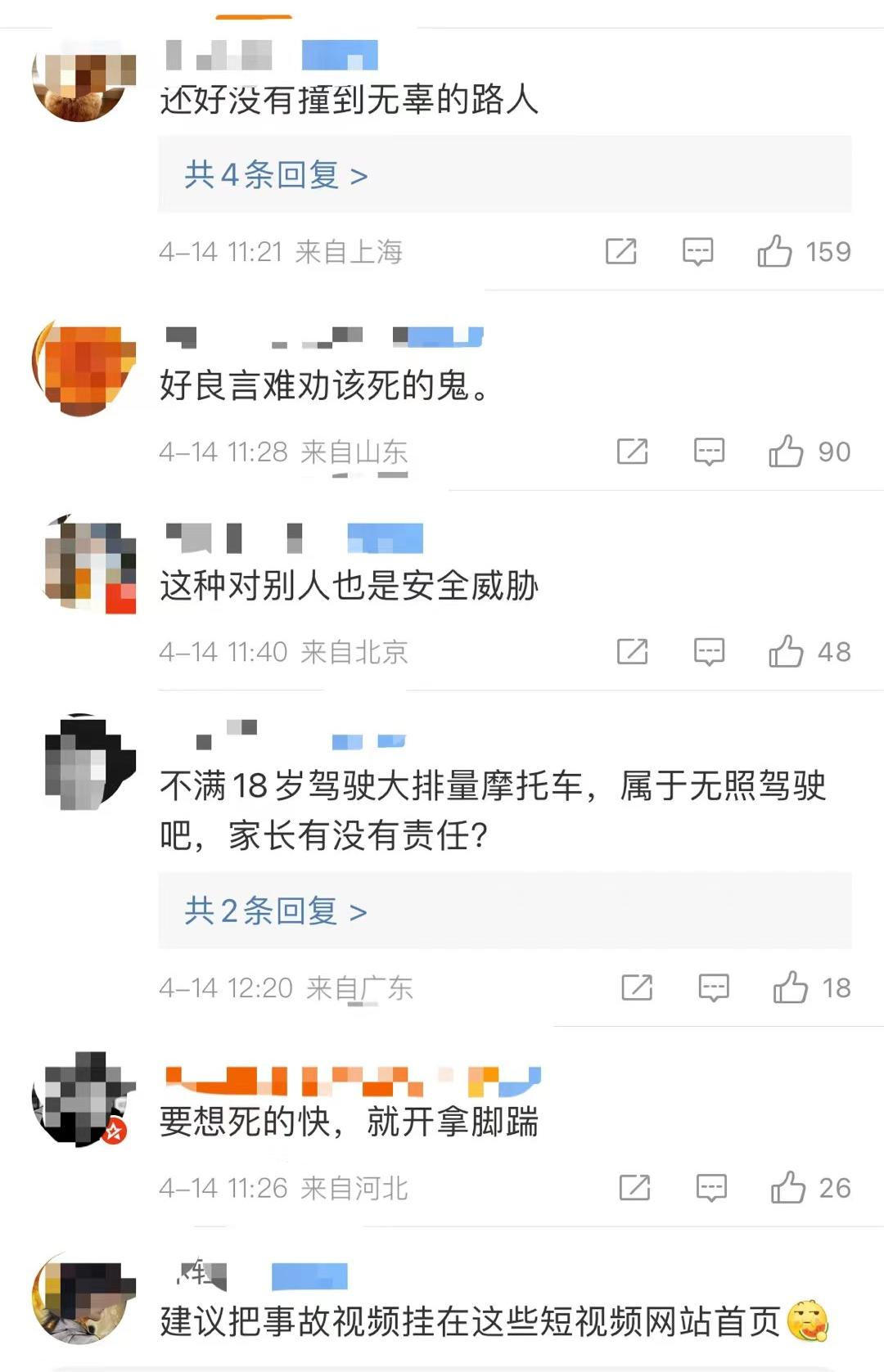 对此,网友们也是议论纷纷,许多网友表示“自己的命自己负责”“好言难劝”……也有网友提出疑问“不满18岁驾驶大排量摩托车,属于无照驾驶吧?”“怎么没人管管”……