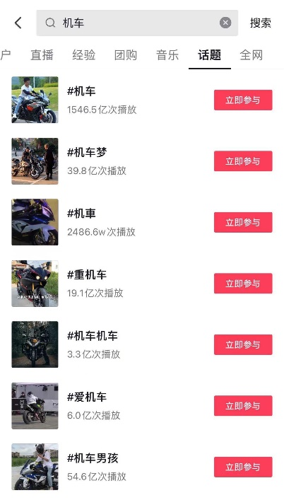 法治网研究院注意到,在抖音平台搜索“机车”,各类相关话题的播放量以亿计算,仅机车一个词条的播放量就达1546.5亿次。巨大的流量正吸引着越来越多人的梦想成为机车网红,同时也使得机车网红们不断用更刺激的视频来吸引更多的关注。