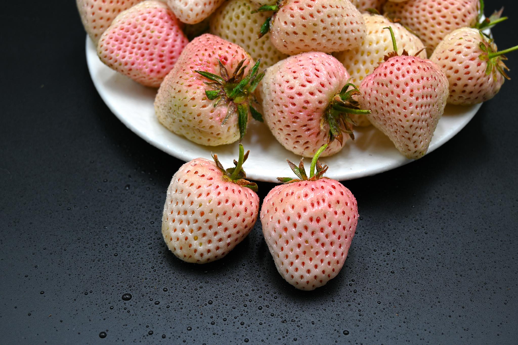 果实和果肉呈粉白色的白雪公主草莓