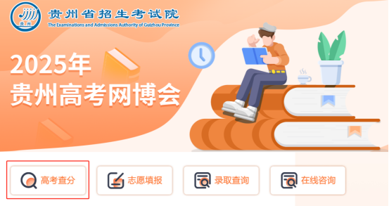 登录贵州省招生考试院官方网站(https://zsksy.guizhou.gov.cn/)首页,点击“贵州省普通高校招生考试考生综合信息平台”进入查询页面,或通过“贵州省2025年高考网博会”入口,点击进入,找到“高考查分”,正确输入考生号和密码登录成功后即可查询。