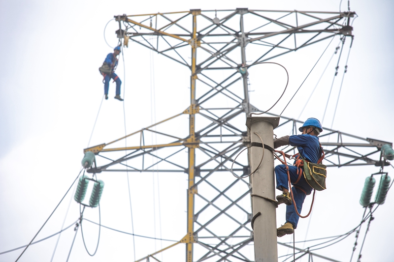 国网达州供电公司工作人员高空作业。(国网四川省电力公司达州供电公司供图)