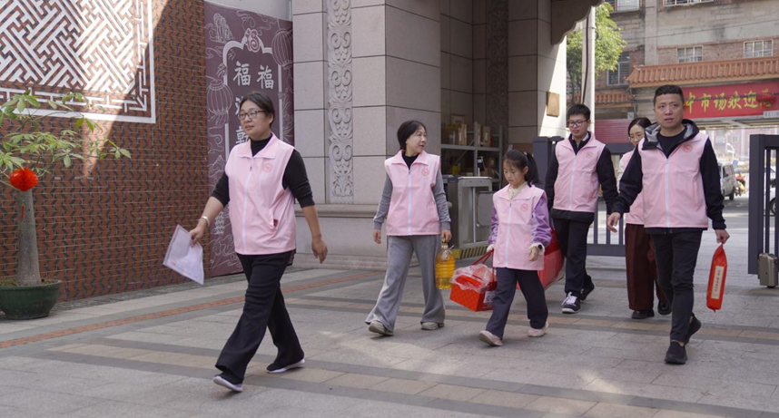 志愿者们携带爱心慰问物资走入鲤城区。