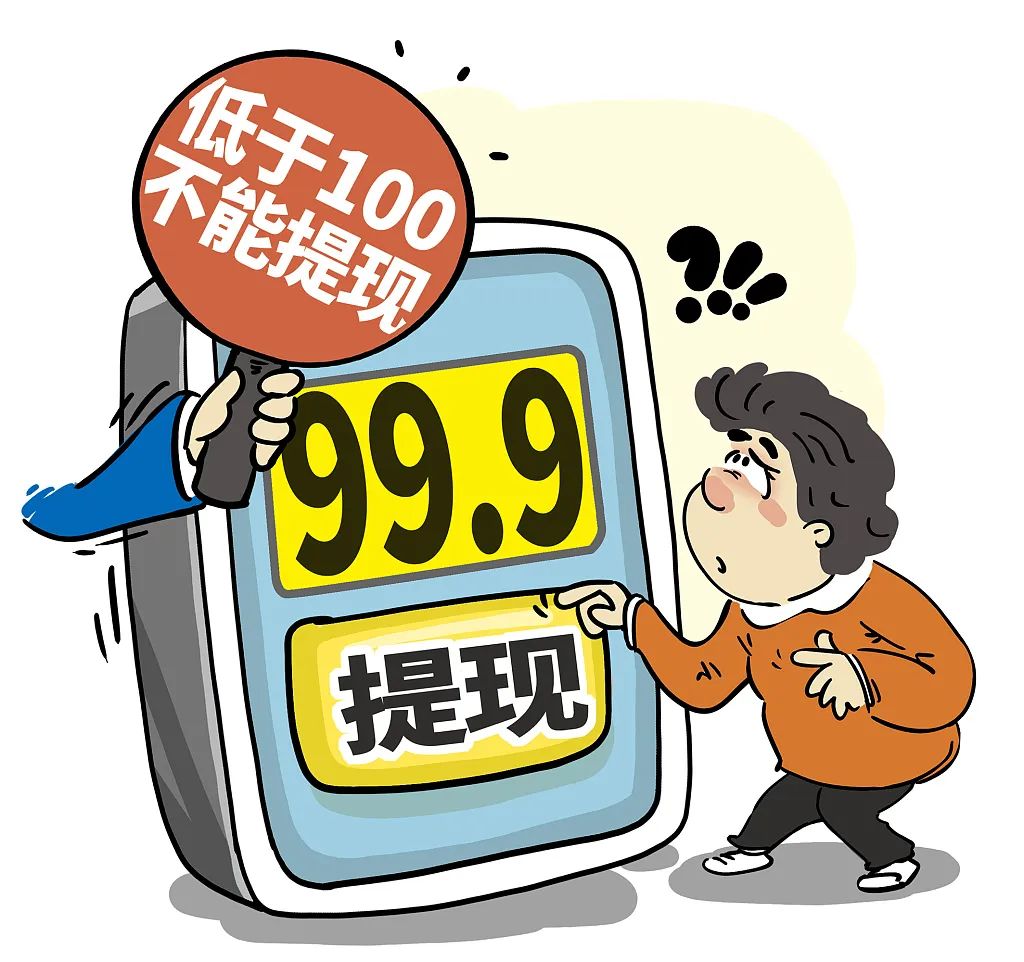 有消费者反映,自己在一款游戏App上提供陪玩服务赚取服务费用,但遭遇了未满100元不让提现的限制;还有消费者反映,自己在某阅读平台参加活动赚钱提现,但是赚够了10元去提现时,界面显示变成了20元才能提现,等赚够了20元,规则又变成了30元才是提现门槛……另外,还有不少消费者投诉,参加各类平台的邀请新用户赚红包活动,现金难以到账。