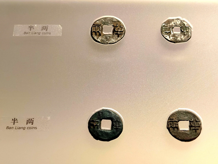 “半两 ”钱始铸于秦惠王(公元前 336 年)时。秦始皇二十六年(公元前 221年)统一币制,“黄金以镒名,为上币;铜钱识曰'半两’,重如其文,为下币”。秦半两的标准重量为12铢。从此,方孔圆钱成为古代社会最基本的法定通货。两汉时期的钱币基本属于纪重钱制,西汉前期主要为半两钱。