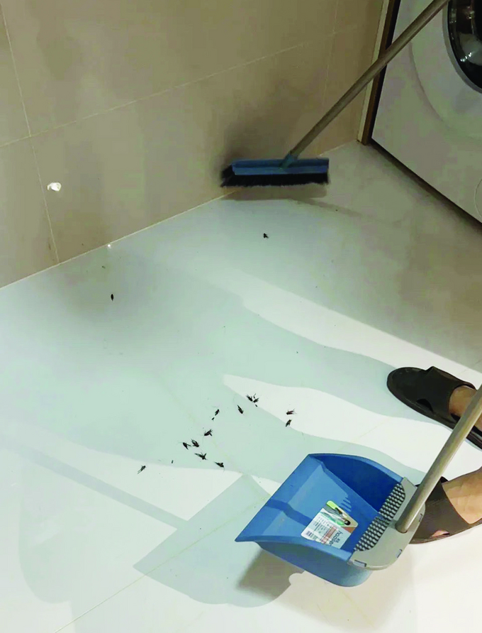住在南京栖霞山附近的居民小杨向记者讲述了自家的情况:“我家住25楼,居然也会有蟋蟀,家里可能进了100只。哪怕窗户关着,它们也能从缝隙里钻进来,垃圾桶底都被铺满了。家里的小猫还跟着凑热闹,在客厅里上蹿下跳地捉虫子,根本停不下来。”
