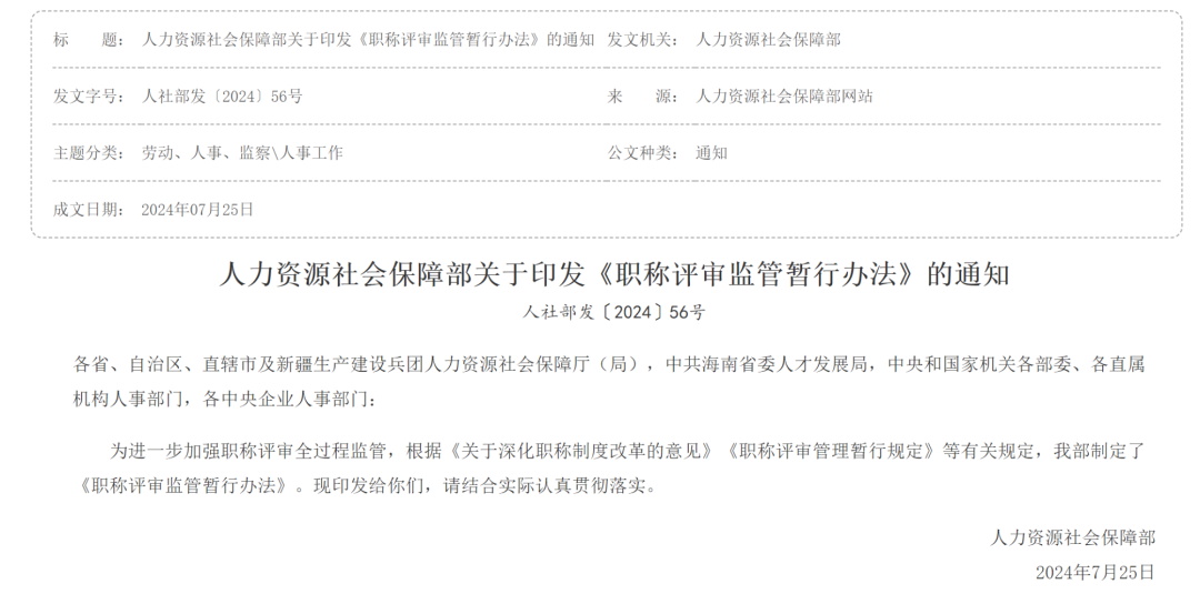 近日,人力资源社会保障部发布《职称评审监管暂行办法》(以下简称“办法”)。办法提出,对个人违规行为实行信用管理,职称评审中的失信行为将作为申报评审职称或参与职称评审工作的重要参考,严重失信行为将纳入职称申报评审失信黑名单并依法予以失信惩戒。对于与职称评审无关的中介等其他社会机构假借职称评审名义开展的违法违规活动,办法将其作为各地职称评审环境专项整治的重点内容,要求地方人社部门会同公安、市场监管、网信等部门依法对其进行处罚处置。