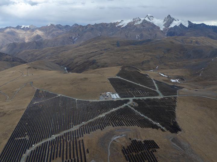 华电西藏才朋光伏电站光伏列阵区。新华社记者姜帆 摄