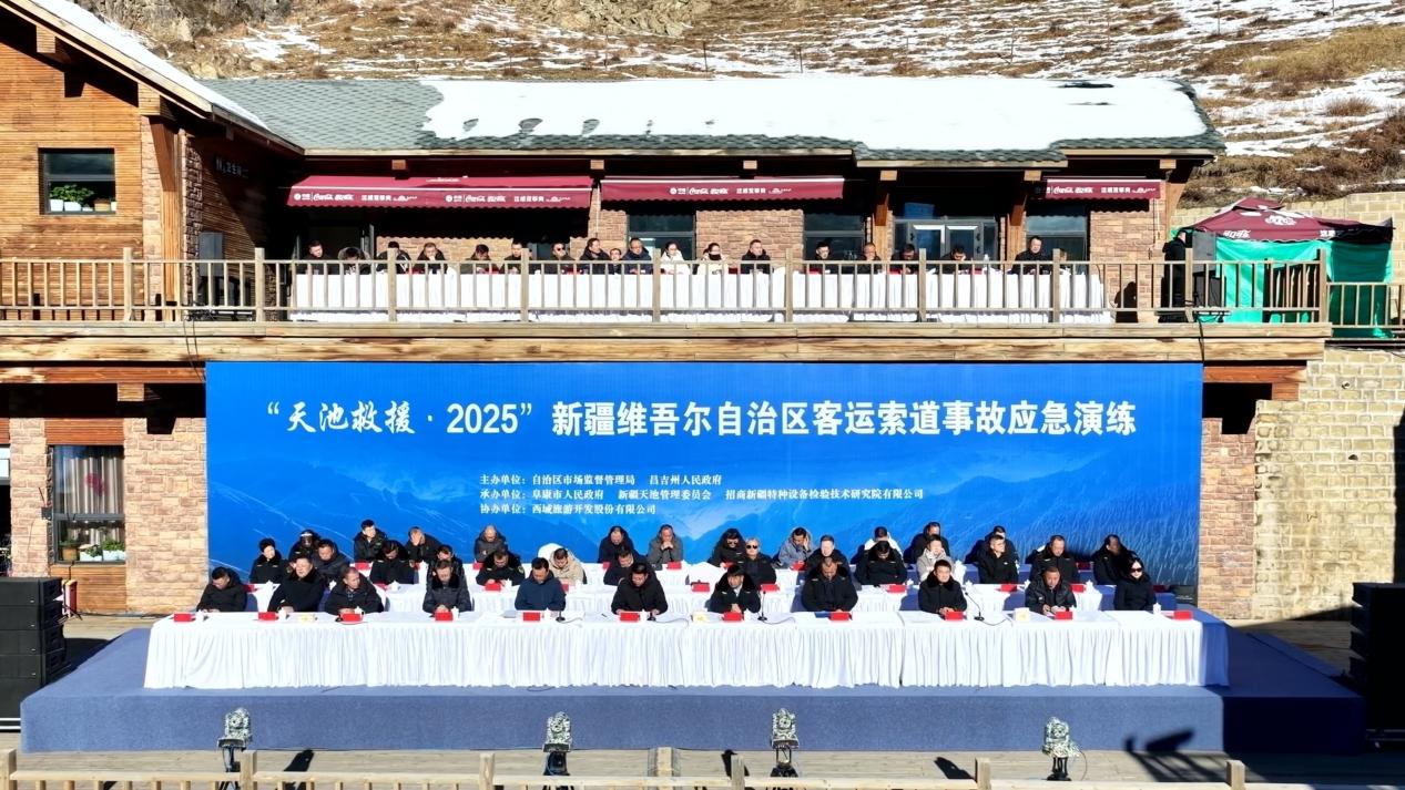 本次演练由自治区市场监管局、昌吉州人民政府主办,阜康市人民政府、新疆天池管理委员会、招商新疆特种设备检验技术研究有限公司承办,西域旅游开发股份有限公司协办。