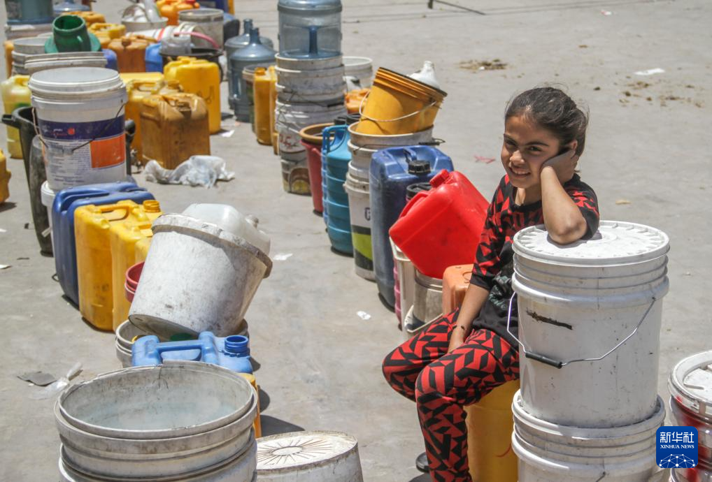 6月4日,在加沙地带北部杰巴利耶难民营,一名女孩等待取水。