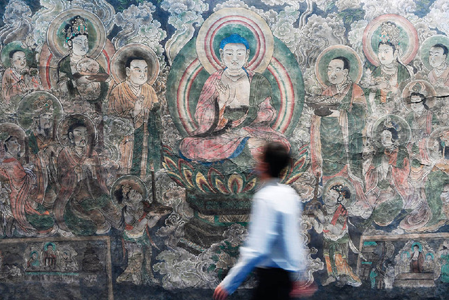 2021年9月,观众在敦煌流散海外精品文物复制展上参观