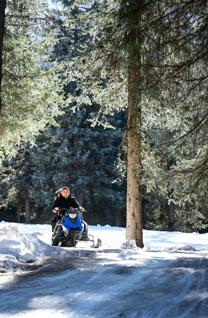 入冬以来,青海省海北藏族自治州祁连县依托雪山和林海生态资源,在阿咪东索林海露营基地推出雪地摩托、林间徒步等旅游项目,假日休闲消费持续升温,迎来冬季旅游热潮。