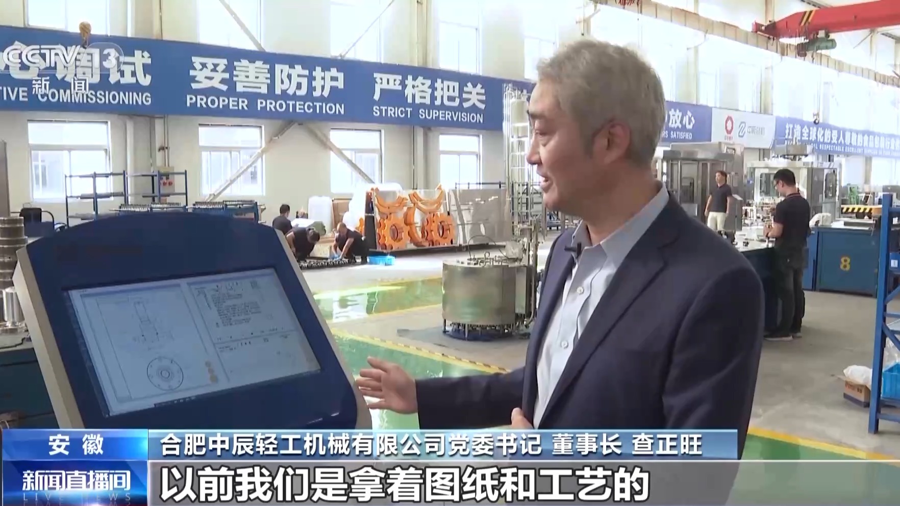 合肥中辰轻工机械有限公司党委书记、董事长 查正旺:这个是工位机,以前我们是拿着图纸和工艺的,现在这些技术资料都是从我们的技术中心一键进入一线操作者,实现了无纸化加工。