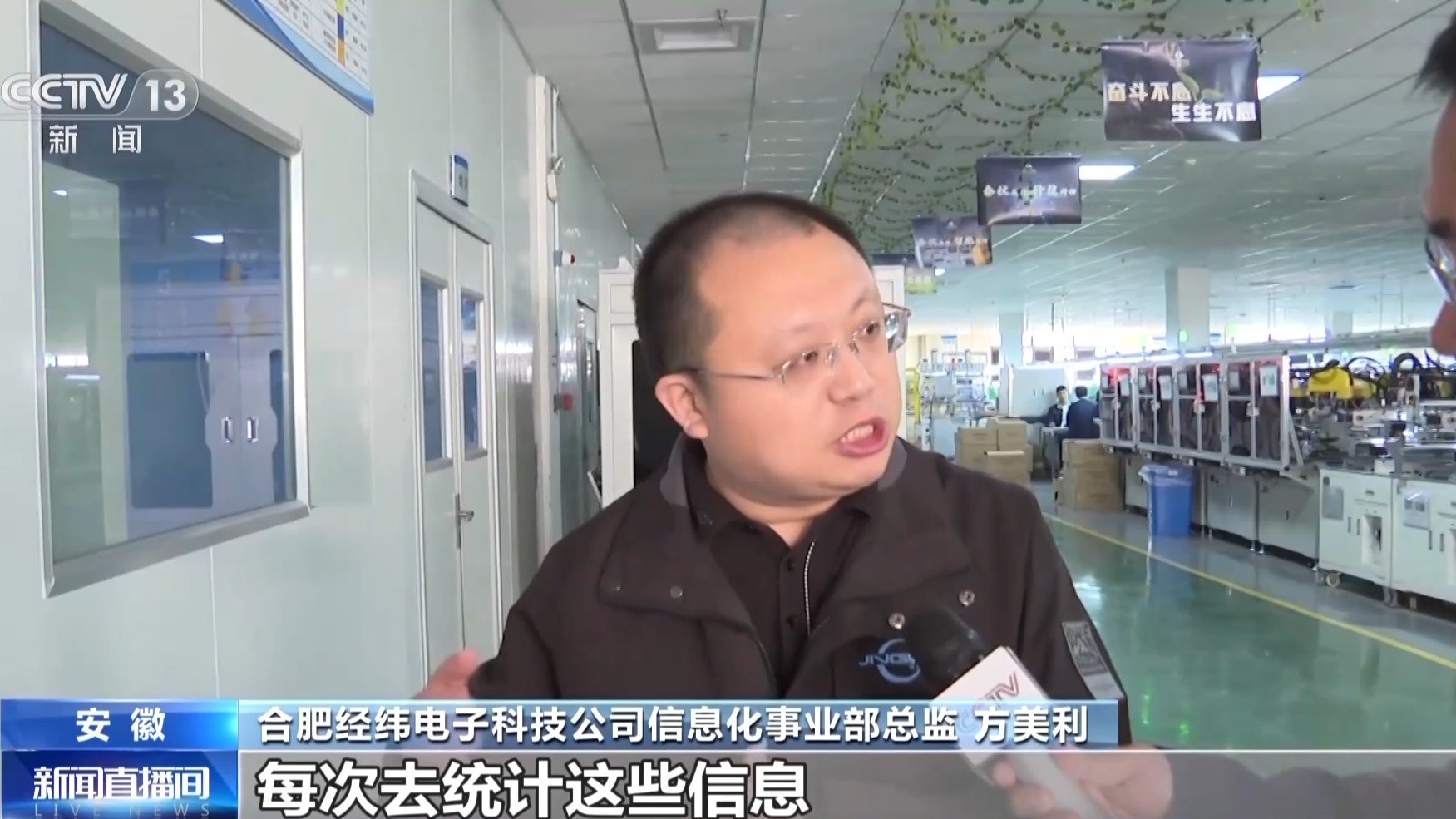合肥经纬电子科技公司信息化事业部总监 方美利:原来的部分都是靠人工、手工每次去统计这些信息,现在我们上了一个数字化的3D动画看板之后,实时把我们每一个关键岗位的实时数据采集回来。