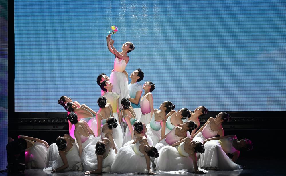 1月25日,北京师范大学附属中学金帆舞蹈团表演舞蹈《一路繁花》。