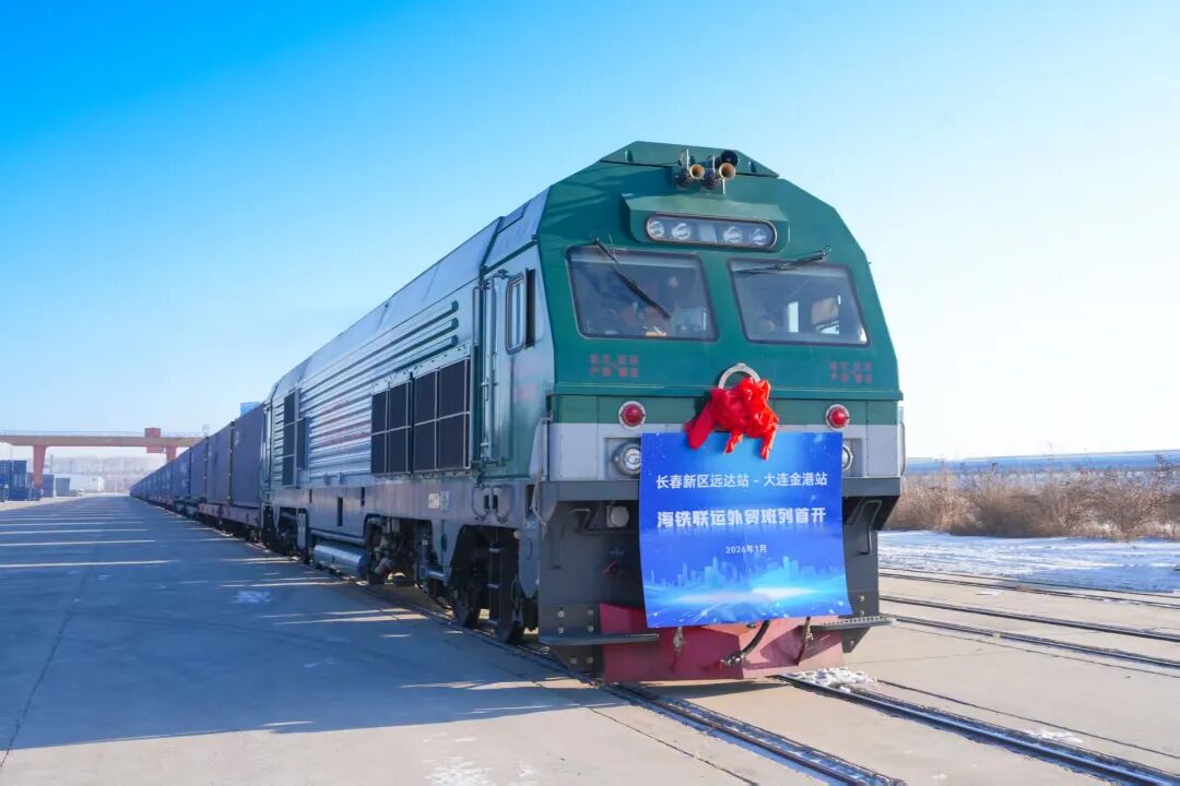 1月6日,满载着外贸货物的班列从长春新区远达铁路货场驶出,标志着长春新区远达站至金港站海铁联运外贸大通道正式开通运营。