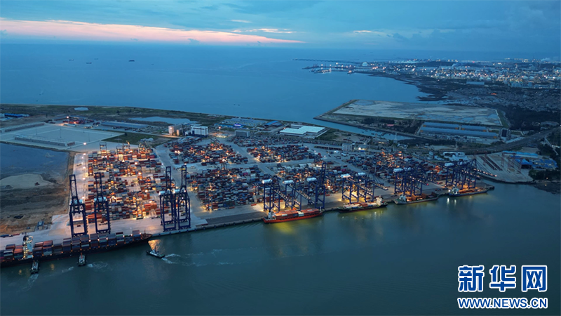 24小时持续工作的洋浦国际集装箱码头。新华网发(丁一 摄)