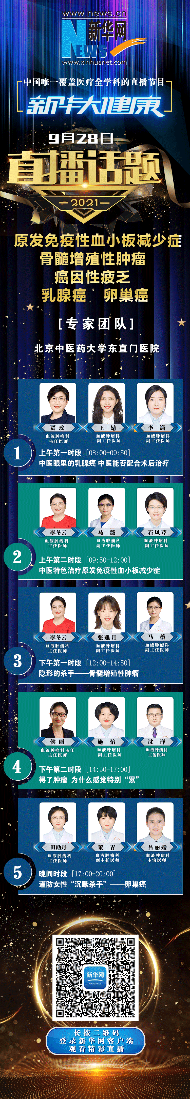 1、乳腺癌的发病率位居女性恶性肿瘤首位,基因检测能预测到乳腺癌的发生几率吗?中医是如何认识乳腺癌的?乳腺癌术后怎样配合中医治疗?为什么中医讲究“身心同治”?如何制订中西医并重的个体化治疗方案?有不打针、不吃药就能预防乳腺癌的方法吗?