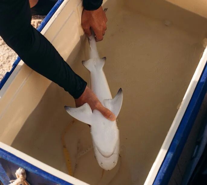 当鲨鱼处于翻面状态时,不仅是对于虎鲸,对于科学家也是一件好事。他们发现此时,鲨鱼对疼痛的敏感性会降低。这可以让他们在不太有压力的情况下,安全靠近鲨鱼,并在它们身上切开一个小切口,插入声波标签,进而追踪它们的迁徙路线、活动模式和栖息地偏好。