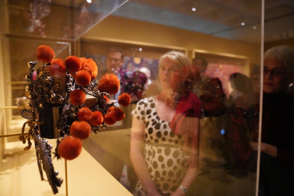 3月11日,人们在美国纽约华美协进社中国美术馆参观“飞翼歌舞:梅兰芳访美演出”展览。