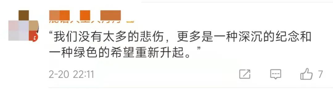 “我们没有太多的悲伤,更多的是一种深沉的纪念和一种绿色的希望重新升起。”