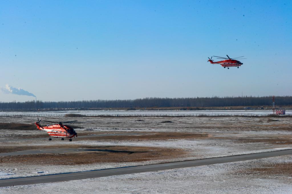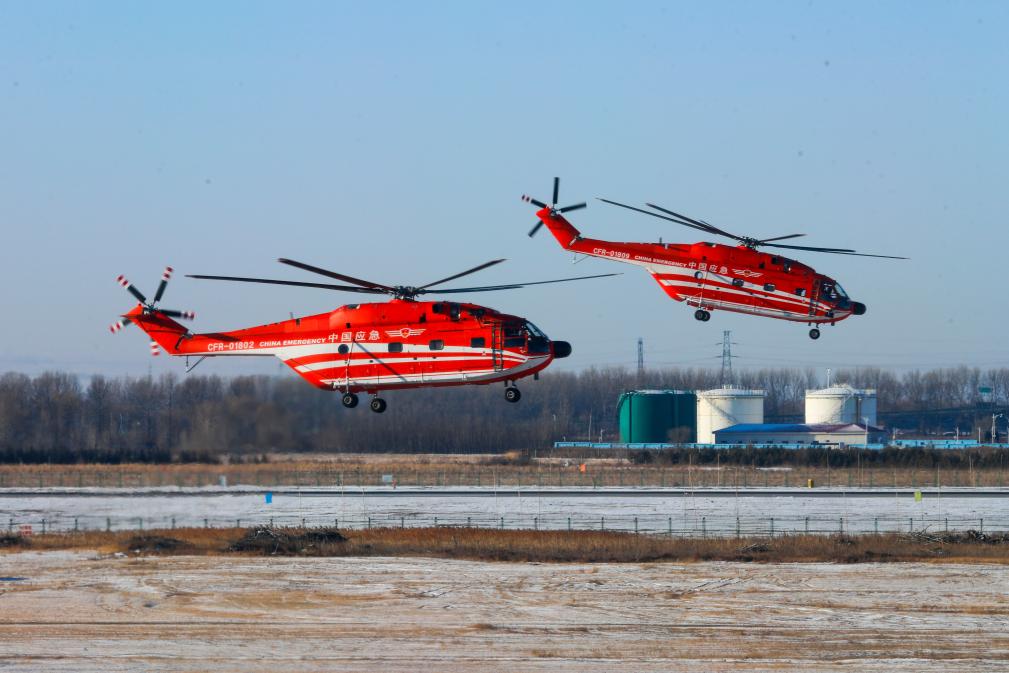 1月29日,在空投实战化训练现场,救援直升机增速飞向空投预定地点。