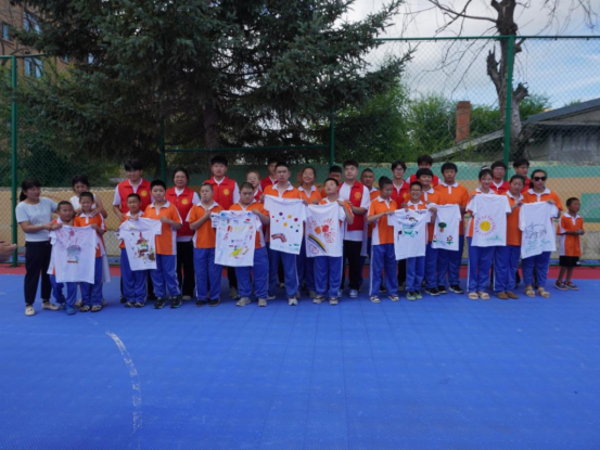 在拜泉县特殊教育学校,服务队开展暖心帮扶活动,捐赠体育用品和图书并搭建图书角、发放纯白T恤引导孩子们创意绘画,同时,开展心理辅导,帮助孩子们树立自信与希望。