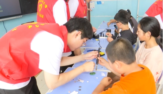 在拜泉县丰产乡中心学校,服务队多措并举助力教育发展。通过普法讲座、“两弹一星”精神及党的二十大相关精神宣讲,引导学生增强法治意识,树立科技报国、艰苦奋斗的理想信念;同时,介绍了学校办学特色和人才培养成果,激发学生对高校和知识的向往。在实验教学环节,服务队以电子陀螺焊接等物理演示实验,将抽象知识具象化,有效提升学生学习兴趣。此外,服务队捐赠篮球、足球、排球及书籍,搭建图书角,助力优化乡村学校学习环境,丰富学生课余生活。
