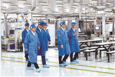江苏盐电阀门有限公司是集科研、生产、销售于一体的高品质工业阀门专业制造商,入选国家级专精特新“小巨人”企业。图为中信银行南京分行辖内盐城分行客户经理在车间实地调查,为客户提供授信支持,助力客户做大做强,拓展海外市场。