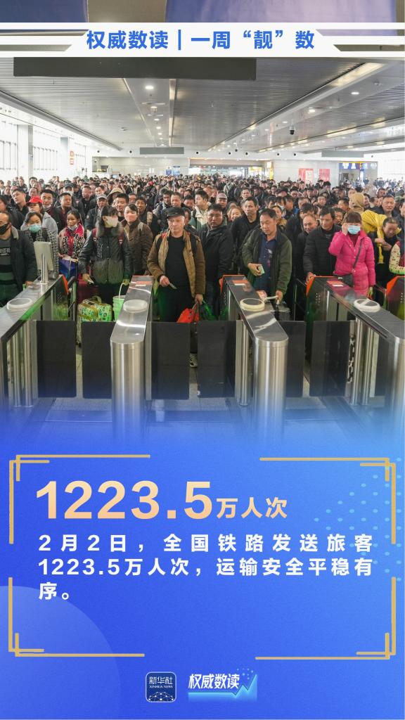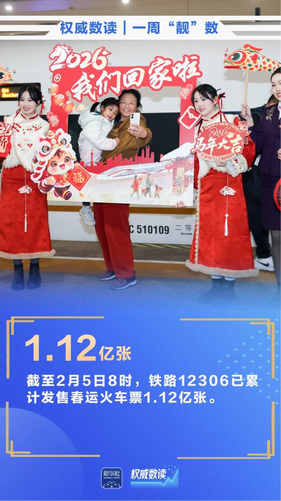 截至2月5日8时,铁路12306已累计发售春运火车票1.12亿张;春运首日,全国铁路发送旅客1223.5万人次;截至2025年12月,我国网民规模达11.25亿人,互联网普及率达80.1%……本周,这些数据最值得关注!