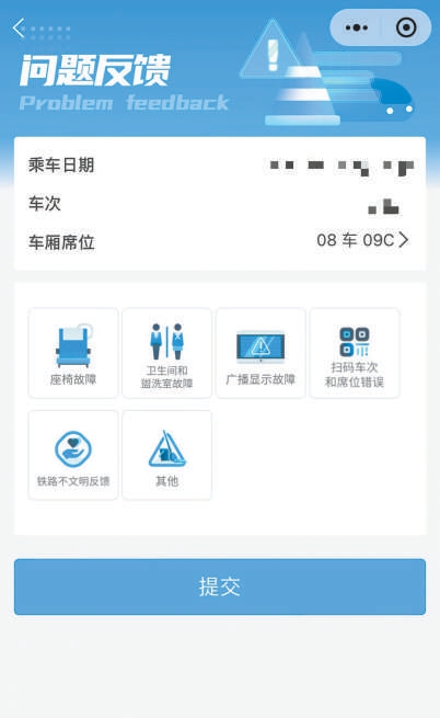 “我坐的是早上的高铁,本来想在高铁上眯一觉,但后座乘客一直在刷视频,声音特别大。”代先生说,当时他想制止,又怕引发冲突,突然记起来曾在网上看到攻略,就扫了座椅边的二维码,将投诉乘客座位号、不文明行为情况,提交反馈给了列车员。约5分钟后,列车员赶到现场,及时劝阻了不文明行为。“这个功能很友好,不用自己和其他旅客直接交涉,避免了乘客之间的正面冲突和尴尬。”