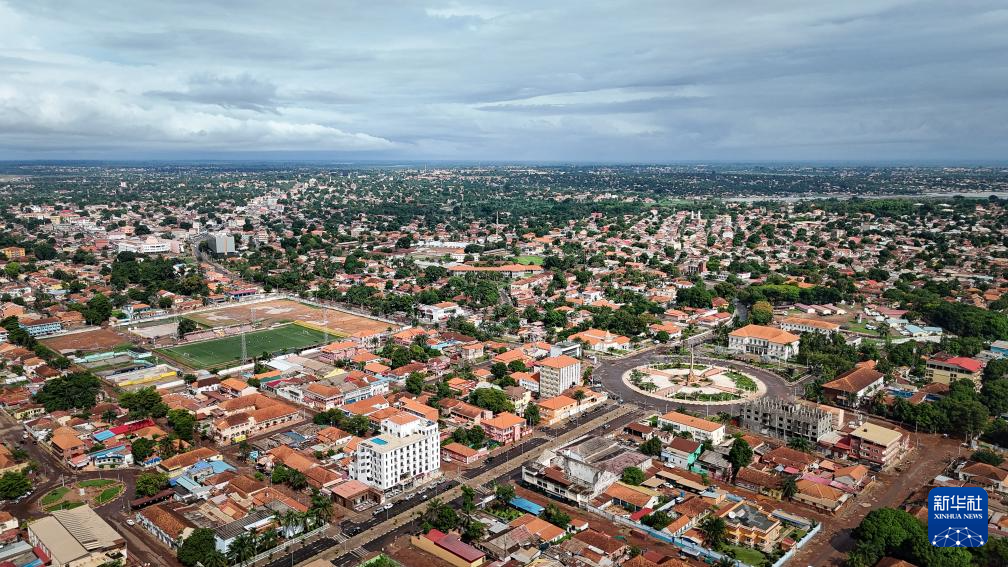 这是7月7日在几内亚比绍首都比绍拍摄的城市风光(无人机照片)。新华社记者 韩旭 摄