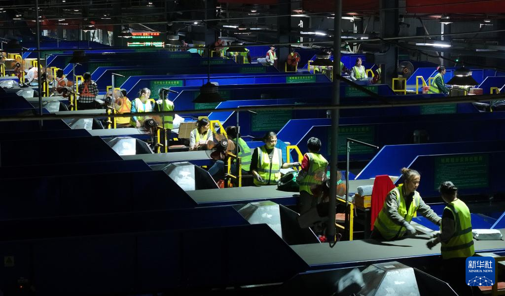 11月12日凌晨,中国邮政集团有限公司衡阳邮区中心局邮件处理中心工作人员在分拣快递包裹。