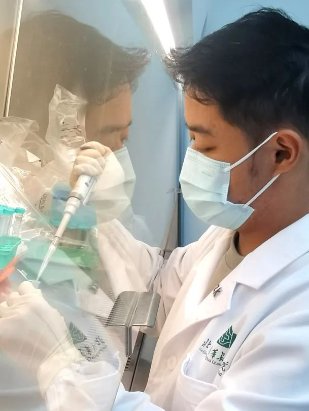 张可(前排中)与足球队友合影 / 张可开展实验(左)。