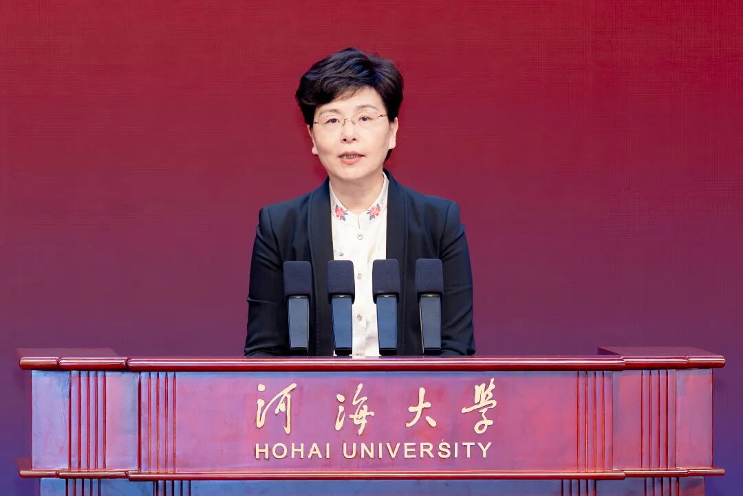 徐缨代表江苏省委、省政府向河海大学全体师生员工和海内外校友表示诚挚问候。她指出,河海大学历史悠久、底蕴深厚,培养了一大批高层次领军人才,产出了一大批创新成果,创造了我国涉水领域若干个第一,为守护江河安澜、助力经济社会发展作出重要贡献。河海大学是江苏的“水上明珠”,江苏是河海大学的坚实依靠。踏上新征程,希望河海大学把牢正确方向,广泛汇聚改革发展力量,在办好世界一流大学上勇立潮头;坚守教育初心,注重抓好红色基因和水利精神传承,在培育拔尖创新人才上勇担重任;彰显特色优势,推进科教融汇、产教融合,在推动水利科技创新上勇于争先;提升服务质效,多建睿智之言、多献务实之策,在促进经济社会发展上勇谱新篇。