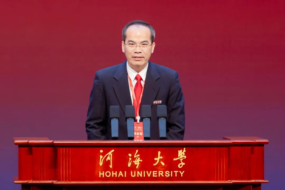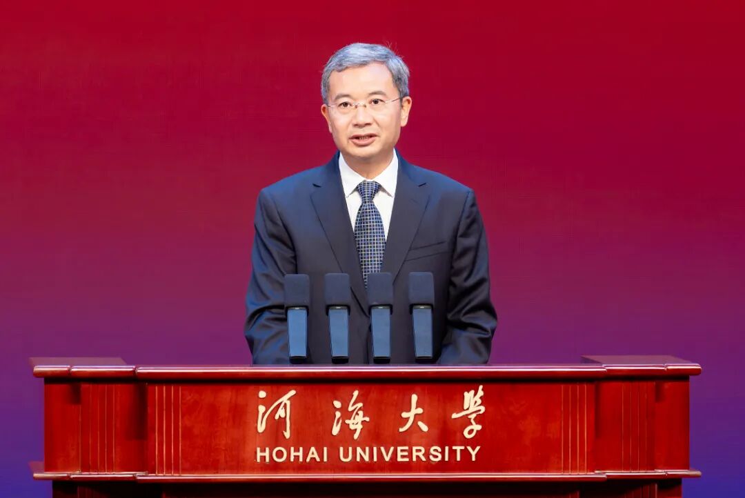 熊四皓代表教育部向河海大学全体师生员工和广大校友致以热烈祝贺和诚挚问候。他指出,河海大学是中国第一所培养水利人才的高等学府,先后为国家培养了30余万名优秀人才。学校主动服务国家“江河战略”、“双碳”战略,以“水”为特色的一流学科建设取得积极成效,产生了一系列标志性成果。立足新起点,希望河海大学坚持社会主义办学方向,坚定不移落实立德树人根本任务,努力培养更多担当民族复兴大任的时代新人;坚持改革创新,全面提升人才自主培养质量,培养更多拔尖创新人才和国家战略急需人才;加强有组织科研,更好服务国家战略和区域经济社会发展,为保障国家水安全、参与全球水治理贡献更多“河海方案”。