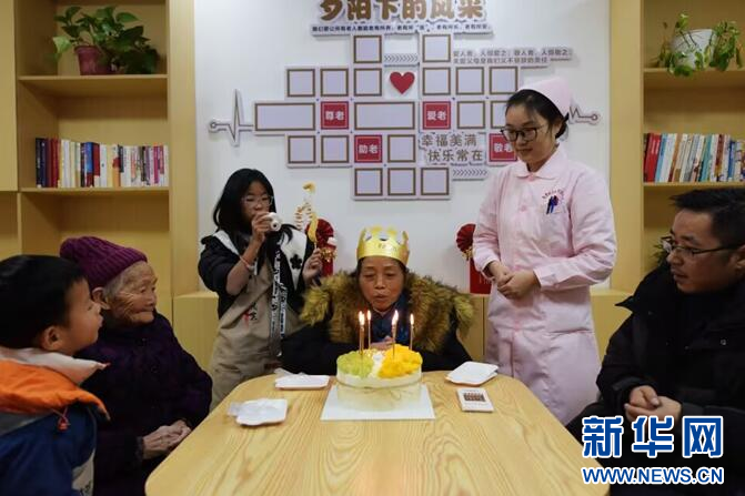 图为卫生院帮医养中心老人过生日。新华网发