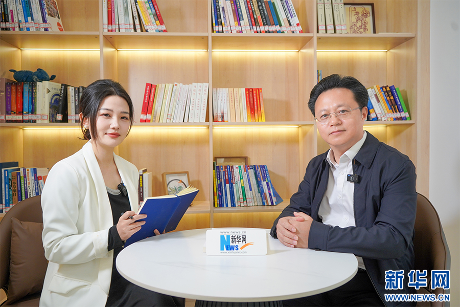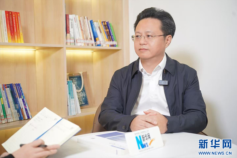 图为湖北开放大学党委副书记、校长陈志祥接受新华网专访。新华网 陈周璇 摄