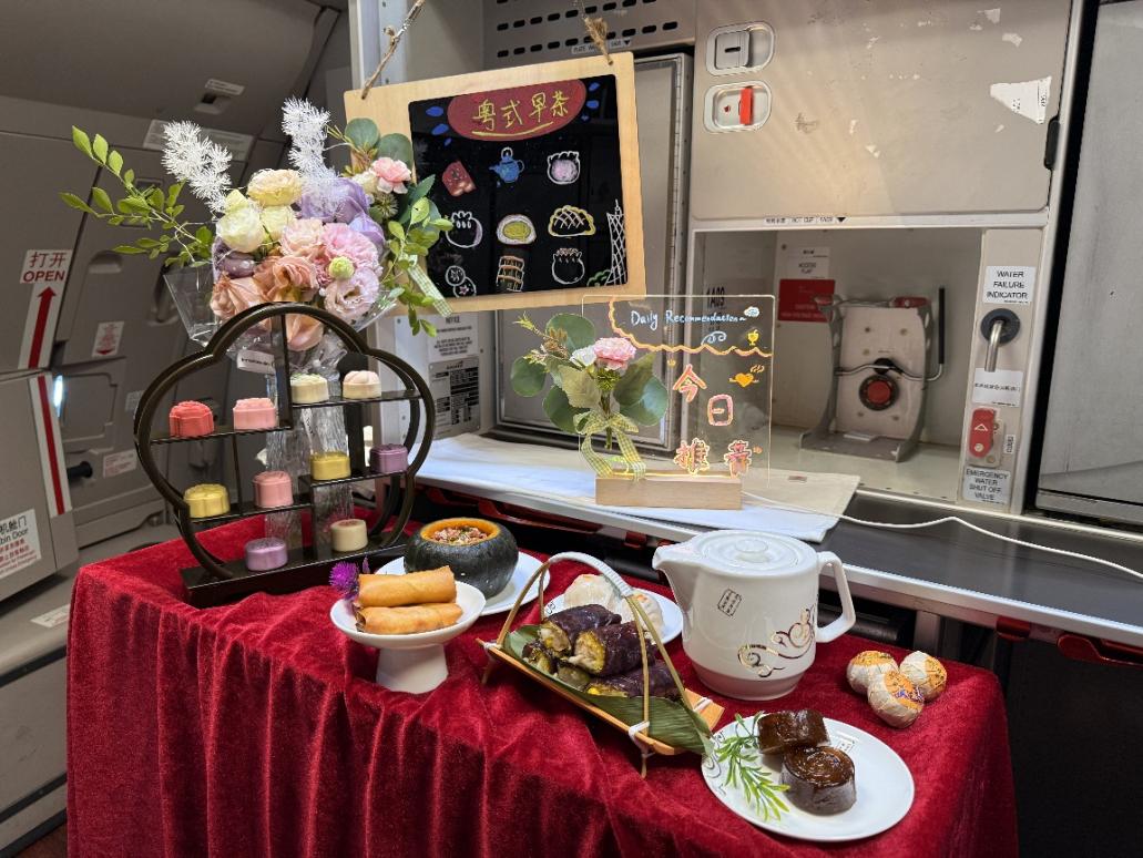 “粤韵”主题航班上特别呈现的粤式早茶