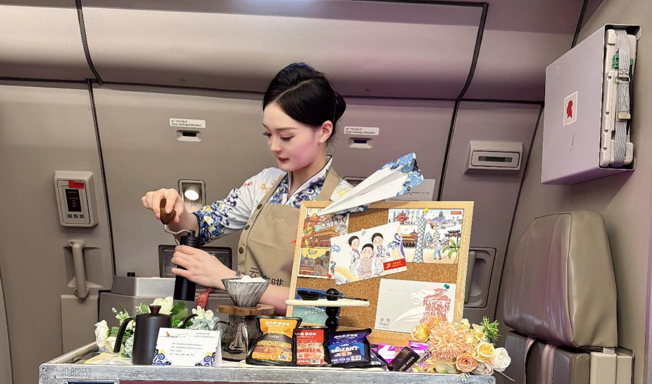 乘务员制作现磨咖啡